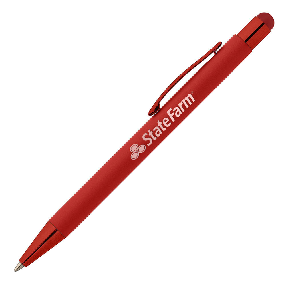 Red Monochrome Stylus Pen with Lasered State Farm Logo.