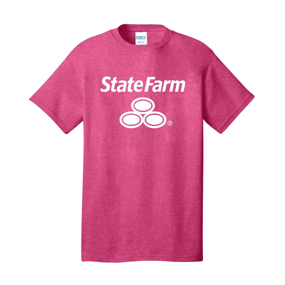 An indispensable t-shirt in our classic silhouette - with a very friendly price. 50/50 cotton/poly. Available in heather sangria with white screenprinted State Farm logo on the center chest.